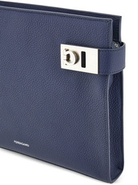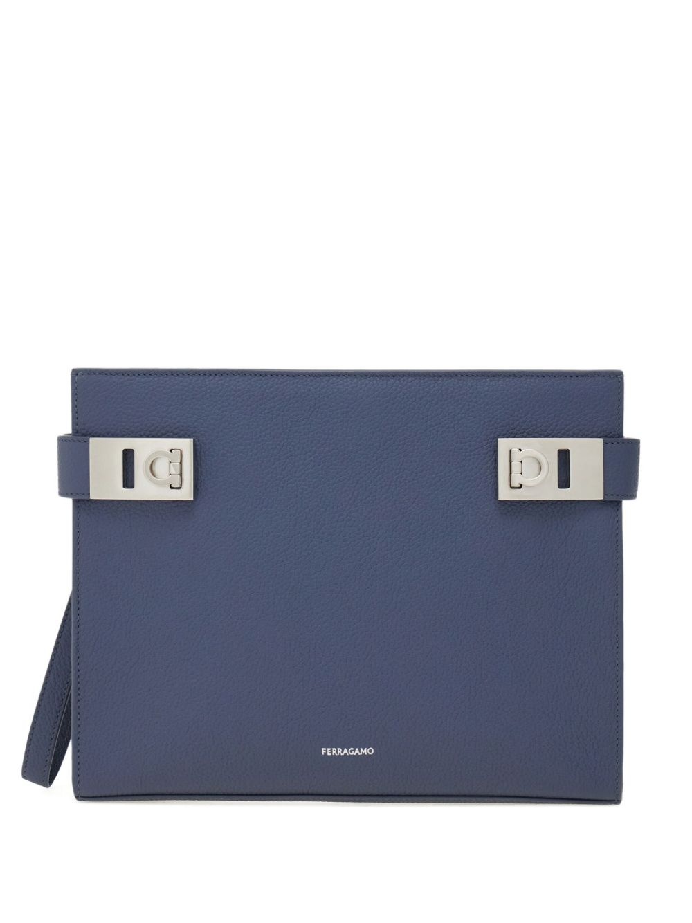 Gancini-buckle leather clutch bag Highlights - Grey - Top zip fastening - Detachable wrist strap - Multiple internal slip pockets - Logo stamp to the front Made in Italy Composition Outer: CALFSKIN 100% SIZE & FIT Measurement DEPTH 1.18 in(3 cm) HEIGHT 8.26 in(21 cm) WIDTH 10.62 in(27 cm)