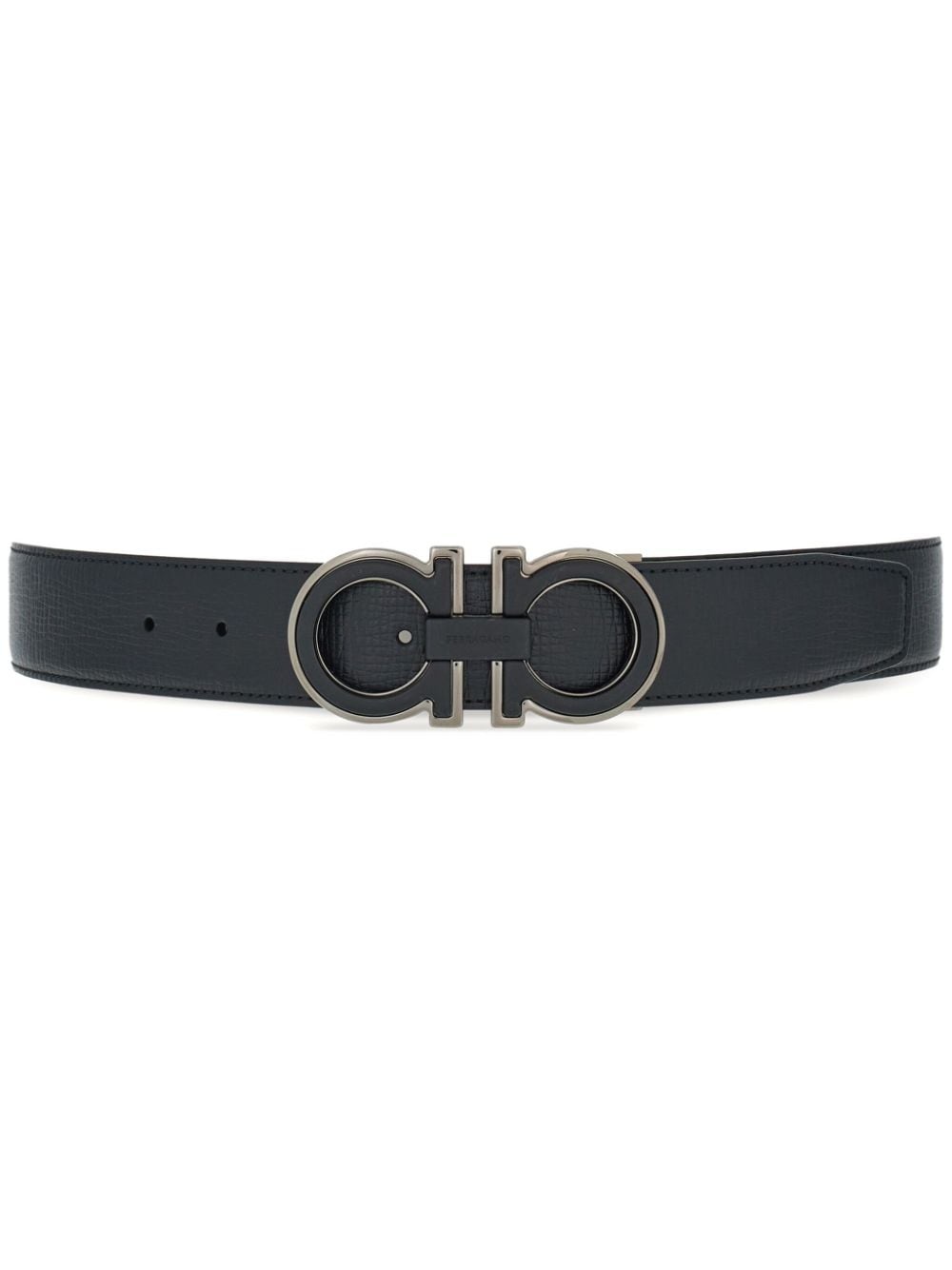 Gancini buckle reversible leather belt Highlights - Midnight blue - Black - Calf leather - Gancini buckle - Reversible - Punched holes - Adjustable fit Made in Italy Composition Outer: CALFSKIN 100% SIZE & FIT Measurement WIDTH 1.37 in(3.5 cm)