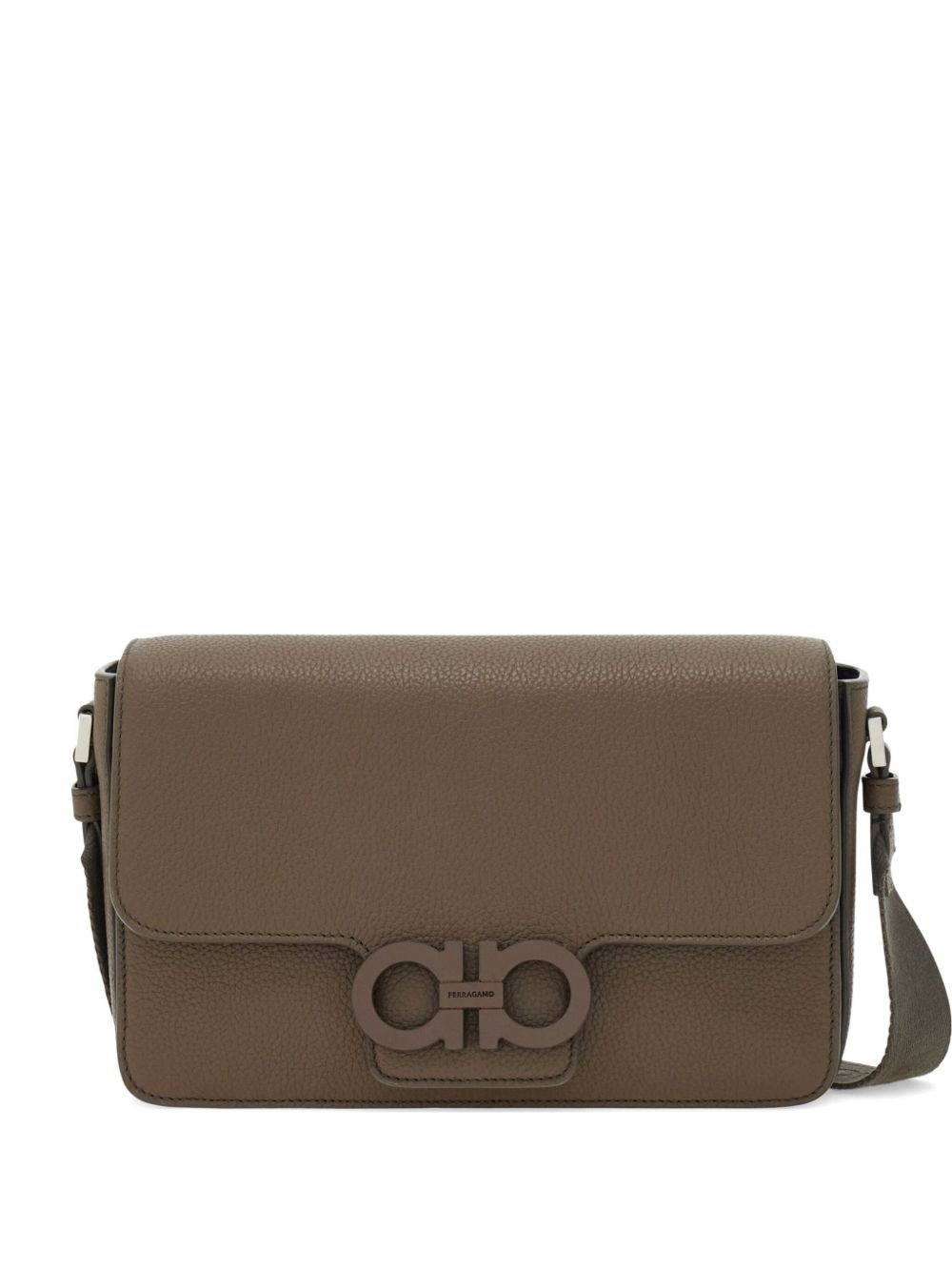 Gancini-buckle shoulder bag Highlights - Chocolate brown - Foldover top - Adjustable shoulder strap - Gancini buckle - This piece comes complete with a protective dust bag. Made in Italy Composition Outer: CALFSKIN 90%, Fabric 10% SIZE & FIT Measurement DEPTH 2.16 in(5.5 cm) HEIGHT 6.29 in(16 cm) WIDTH 9.44 in(24 cm)