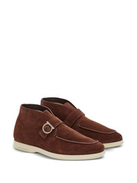 Gancini-buckle suede boots Highlights - Cocoa brown - Calf suede - Gancini buckle - Silver-tone hardware - Round toe - Buckle-strap fastening - Leather lining - Branded insole - Flat sole Made in Italy Composition Outer: CALFSKIN 100%