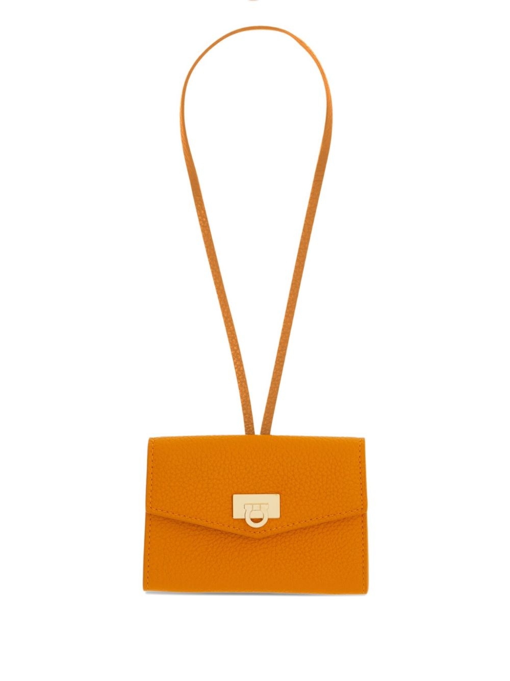 Gancini card holder charm Highlights - Bright orange - Envelope flap - Gancini flip-lock fastening - Adjustable strap Made in Italy Composition Outer: CALFSKIN 100% SIZE & FIT Measurement DEPTH 0.78 in(2 cm) LENGTH 2.95 in(7.5 cm) WIDTH 4.33 in(11 cm)
