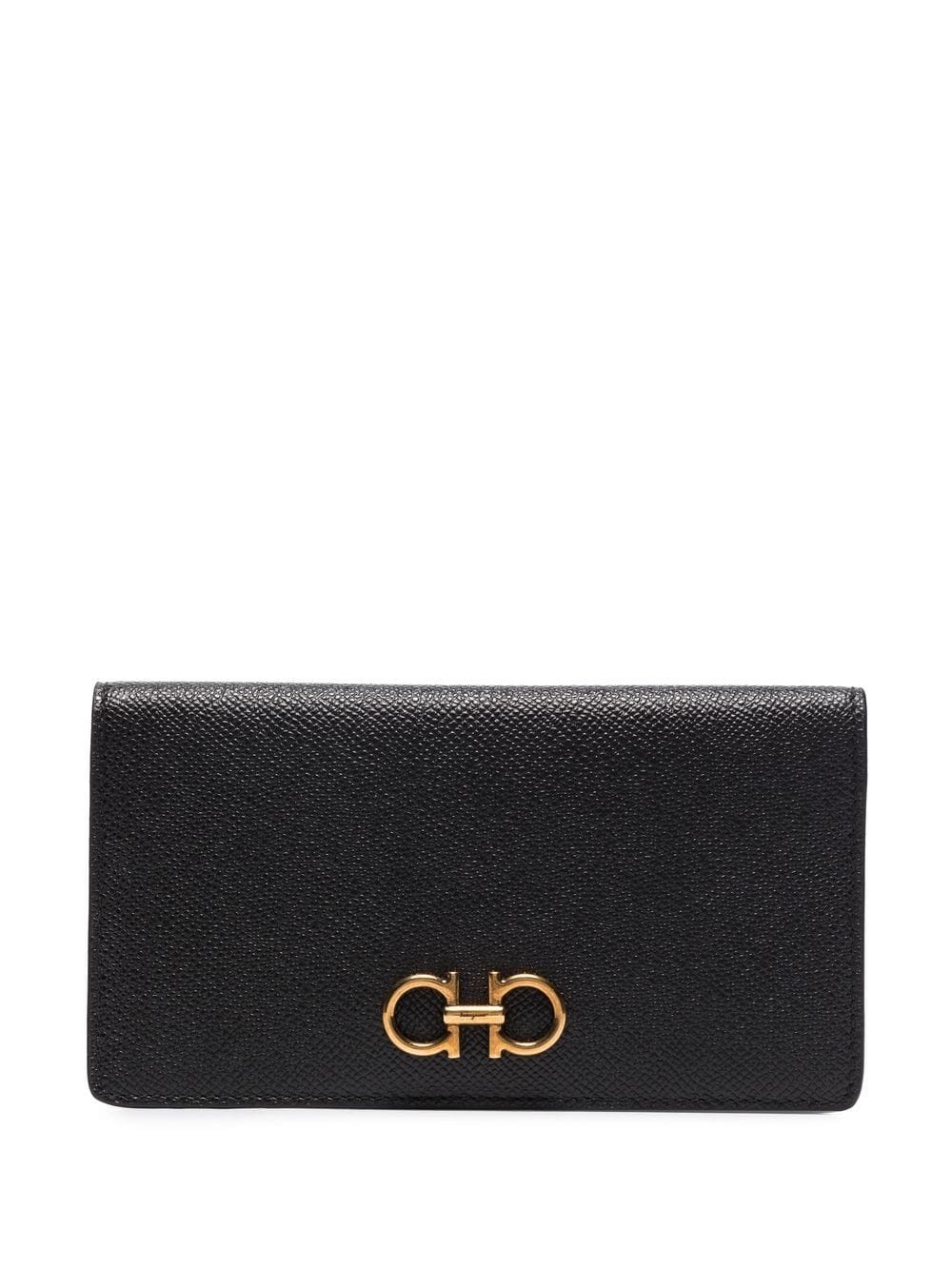 Gancini continental wallet Epitomising Ferragamo's timeless sense of refinement, this continental wallet pairs black leather with gold-tone hardware. This allows the label's renowned Gancini plaque to shine at the very centre of the accessory. Made in Italy Composition Leather 100% SIZE & FIT Measurement DEPTH 0.39 in(1 cm) HEIGHT 3.93 in(10 cm) WIDTH 6.69 in(17 cm)