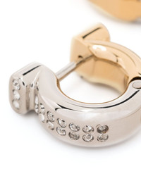 Gancini crystal-embellished hoop earrings Gancini crystal-embellished hoop earrings from Ferragamo featuring gold-tone, silver-tone, brass, glass crystal embellishment, Gancini plaque, medium hoop design and for pierced ears. These earrings come as a pair.. Made in Italy SIZE & FIT Model measurements Height 5 ft 10 in(1.78 m) Bust/Chest 33.07 in(84 cm) Hips 35.82 in(91 cm) Waist 25.98 in(66 cm) Measurement HEIGHT 0.59 in(1.5 cm) Weight (single earring) 4 g(4 g)