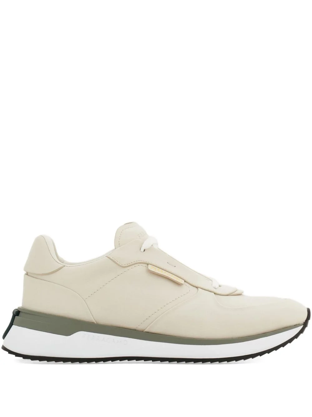 Gancini-detail low-top sneakers Highlights - White - Calfskin leather upper - Two-tone rubber sole - Lace-up fastening - Gancini detail Made in Italy Composition Outer: Calf Leather 95%, Fabric 5% Lining: Calf Leather 100% Sole: Rubber 100%