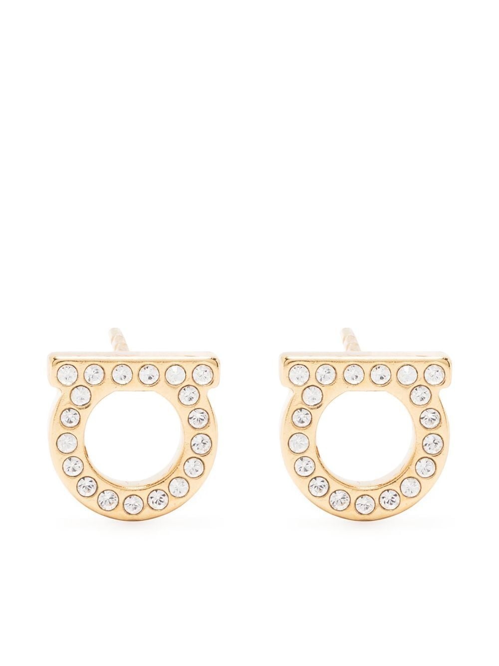 Gancini embellished earrings gold-tone brass crystal embellishment Gancini plaque stud design These earrings come as a pair. Made in Italy SIZE & FIT Model measurements Height 5 ft 10 in(1.78 m) Bust/Chest 31.49 in(80 cm) Hips 37 in(94 cm) Waist 23.62 in(60 cm) Measurement HEIGHT 0.34 in(0.8 cm) WIDTH 0.35 in(0.9 cm)