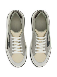 Gancini-embroidered leather sneakers Highlights - Light grey/brown/dark blue - Calfskin - Panelled design - Gancini embroidery - Front lace-up fastening - Contrasting branded heel counter - Round toe - Branded insole - Flat rubber sole Made in Italy Composition Outer: CALFSKIN 100%