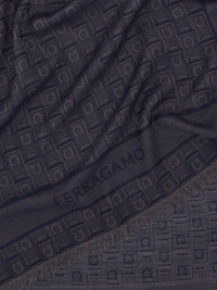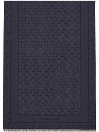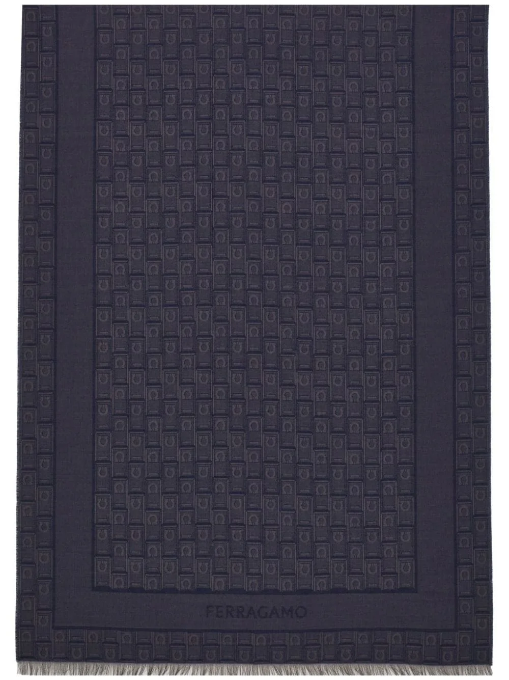 Gancini-jacquard stole Highlights - Navy blue - Cotton-wool-silk blend - Gancini monogram jacquard - Rectangle shape - Frayed edge Made in Italy Composition Outer: Cotton 47%, Wool 30%, Silk 16% SIZE & FIT Measurement LENGTH 78.74 in(200 cm) WIDTH 27.55 in(70 cm)