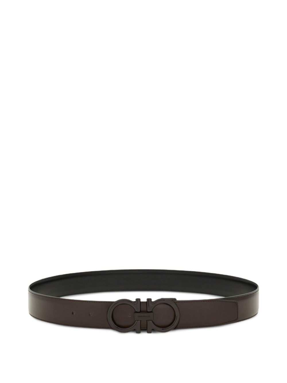 Gancini leather belt Highlights - Dark brown - Gancini buckle design - Adjustable strap - Logo detailing - Perforated holes for sizing Made in Italy Composition CALFSKIN 100% SIZE & FIT Measurement WIDTH 1.37 in(3.5 cm)