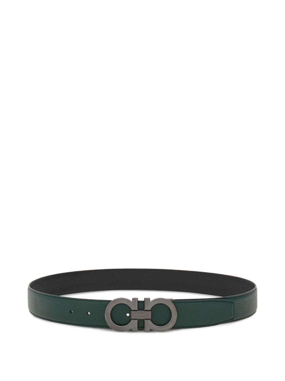 Gancini leather belt Highlights - Dark green - Logo buckle - Multiple holes for adjustment - Smooth finish Made in Italy Composition CALFSKIN 100% SIZE & FIT Measurement WIDTH 1.37 in(3.5 cm)