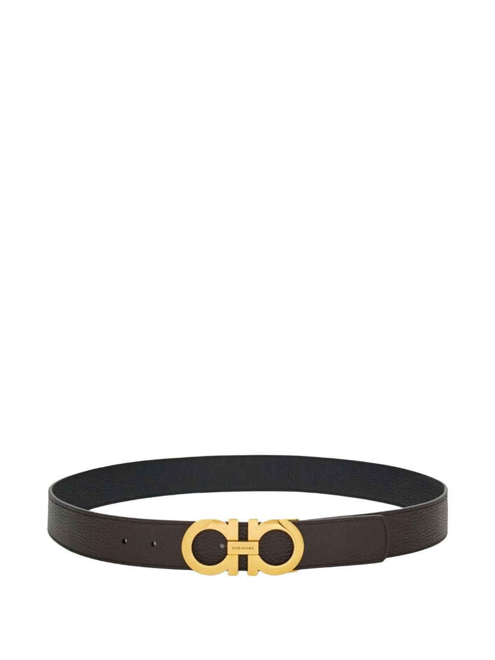 Gancini leather belt Highlights - Dark brown - Leather - Gold-tone buckle - Reversible - Punched holes Made in Italy Composition Calf Leather 100%