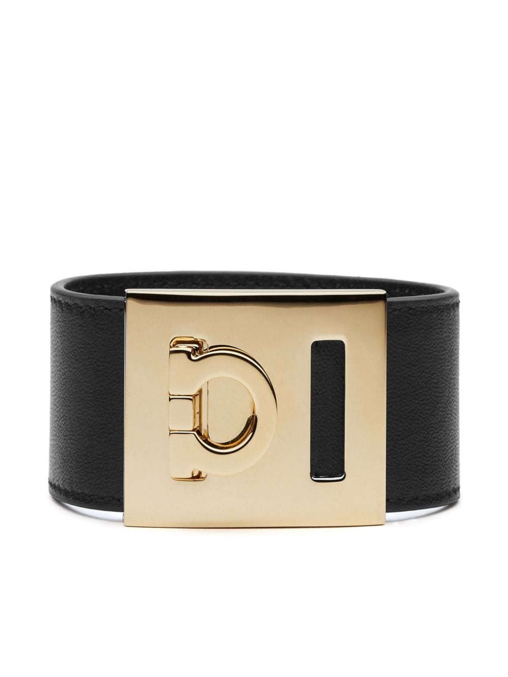 Gancini leather bracelet Highlights - Black/gold-tone - Lambskin - Wide band - Front buckle fastening - Gancini buckle Made in Italy