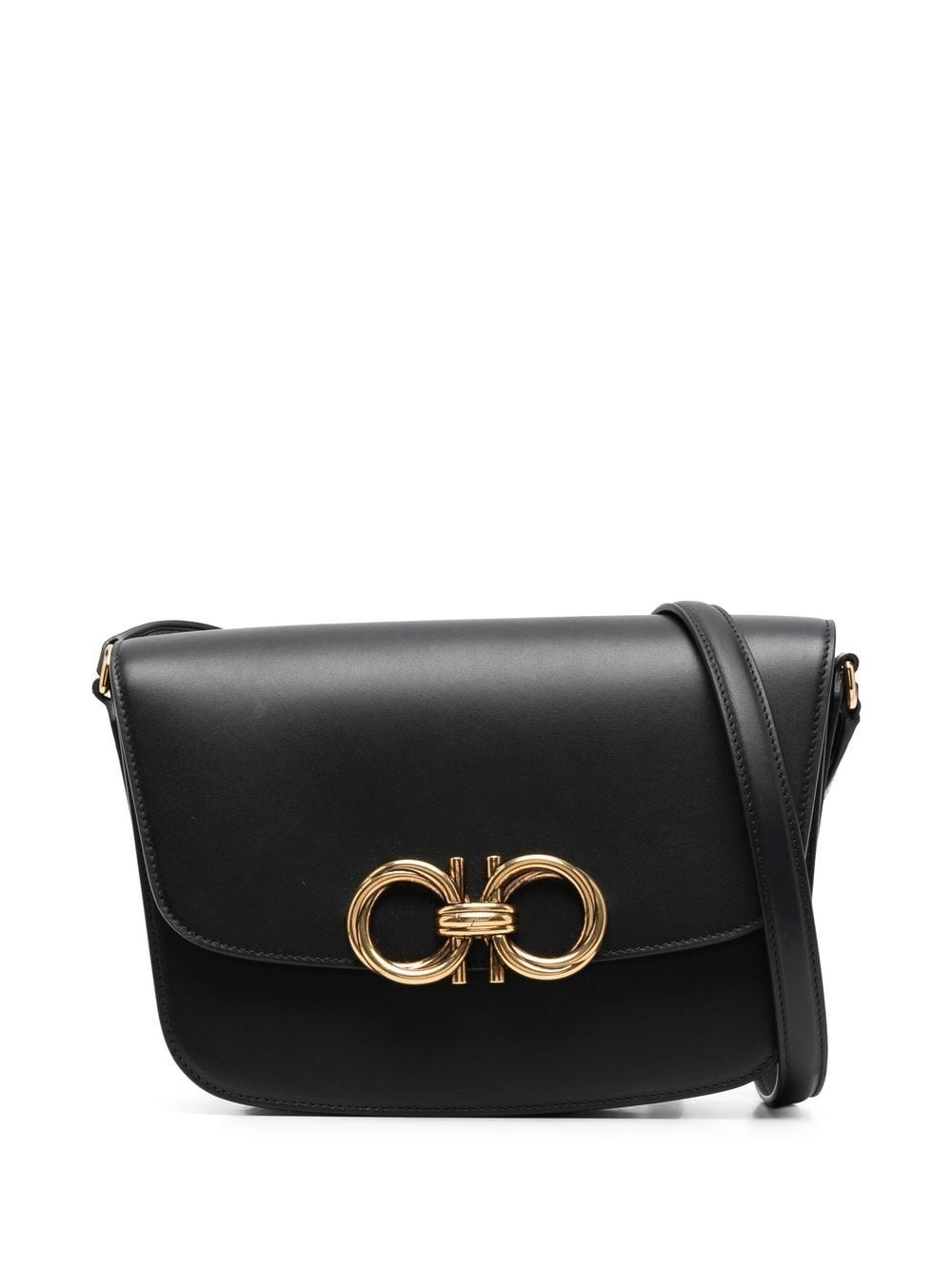 Gancini leather shoulder bag jet black calf leather gold-tone hardware Gancini plaque adjustable shoulder strap foldover top main compartment internal slip pocket Made in Italy Composition Outer: Calf Leather 100% SIZE & FIT Model measurements Height 5 ft 10 in(1.78 m) Bust/Chest 33.46 in(85 cm) Hips 36.22 in(92 cm) Waist 23.22 in(59 cm) Measurement DEPTH 3.14 in(8 cm) HEIGHT 6.29 in(16 cm) WIDTH 10.03 in(25.5 cm)