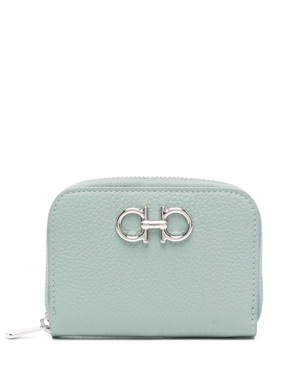 Gancini leather wallet Highlights - Mint green - Calf leather - Pebbled texture - Silver-tone logo plaque to the front - Partitioned compartment - Internal card slots - Internal logo stamp - Full lining - Top zip fastening Made in Italy Composition Outer: Calf Leather 100% SIZE & FIT Measurement DEPTH 0.78 in(2 cm) LENGTH 4.72 in(12 cm) WIDTH 3.14 in(8 cm)