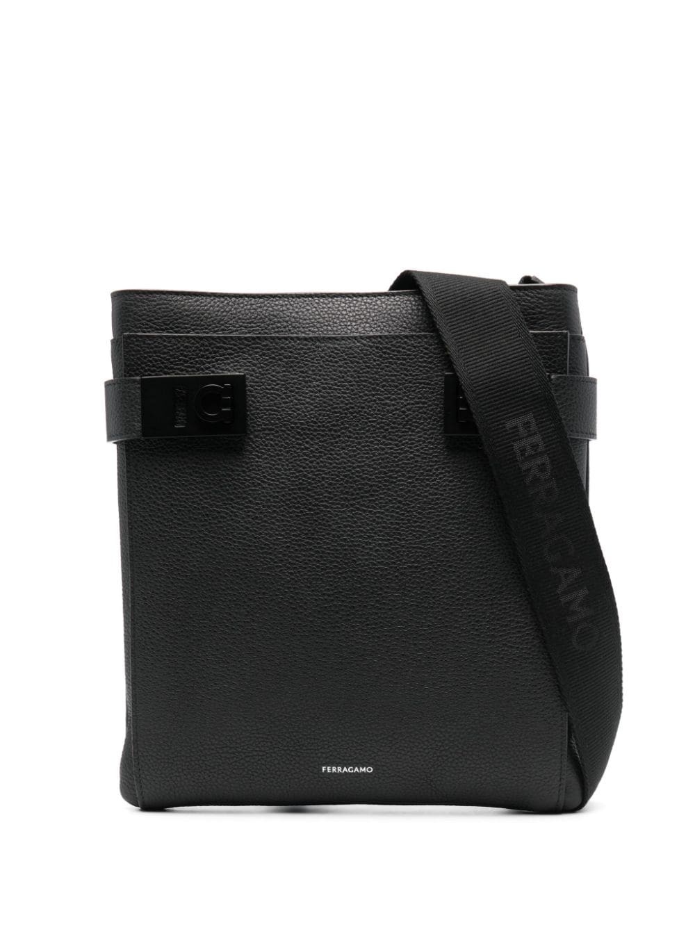 Gancini-lock leather messenger bag Highlights - Black - Calf leather - Grained texture - Logo stamp to the front - Gancini flip-lock fastening - Top zip fastening - Adjustable logo-jacquard shoulder strap - Slip pocket to the front - Internal logo patch - Internal zip-fastening pocket - Tonal hardware Made in Italy Composition Outer: Calf Leather 100% SIZE & FIT Model measurements Height 6 ft 2 in(1.89 m) Bust/Chest 36.22 in(92 cm) Hips 35.82 in(91 cm) Waist 28.54 in(72.5 cm) Measurement HEIGHT 10.23 in(26 cm) STRAP 50.39 in(128 cm) WIDTH 9.44 in(24 cm)