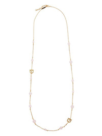 Gancini Long 3D necklace gold-tone brass Gancini plaque rose quartz stone pearl detailing spring-ring fastening adjustable fit hypoallergenic Made in Italy Washing instructions Read Manufacturer Guidelines