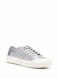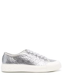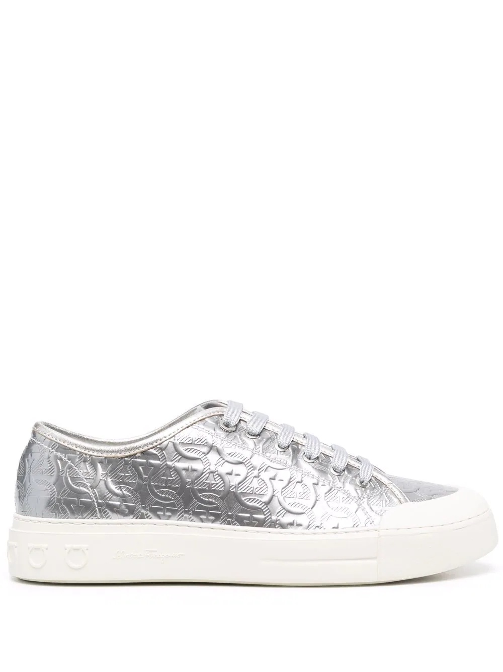 Gancini low-top sneakers Inspired by the gate of Palazzo Spini Feroni, Ferragamo's Gancini motif has become a key house signature for the Italian brand. Seen here adorning these silver-tone sneakers, the simple silhouette allows the raised print to take focus. Made in Italy Composition Outer: Leather 100% Lining: Leather 100%, Fabric 100% Sole: Rubber 100% SIZE & FIT Measurement HEEL 1.37 in(3.5 cm) Sole height 1.18 in(3 cm)