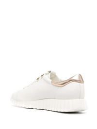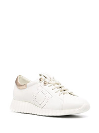 Gancini low-top sneakers Ensure you're always putting your best foot forward in Ferragamo. These Gancini low-top sneakers will add a dose of luxury to your sneaker edit, so even your casual looks are on the next level. They're a step-up. Highlights - White - Perforated logo detail - Round toe - Front lace-up fastening - Contrasting heel counter - Chunky rubber sole Made in Italy Composition Lining: Calf Leather 100%, Fabric 100% Outer: Lambskin 100% Sole: Rubber 100% SIZE & FIT Measurement HEEL 0.98 in(2.5 cm) Sole height 0.39 in(1 cm)