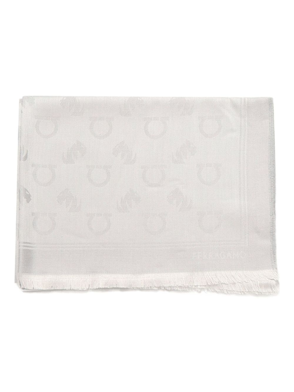 Gancini-pattern fringed scarf Highlights - Light grey - Fringed edge - Gancini jacquard pattern Made in Italy Composition Lyocell 61%, Wool 27%, Silk 12% Washing instructions Read Manufacturer Guidelines