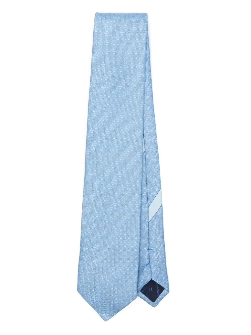 Gancini-pattern silk tie Highlights - Sky blue - Silk - Gancini-pattern print - Pointed tip - Wraparound style - Self-tie fastening Made in Italy Composition Silk 100%