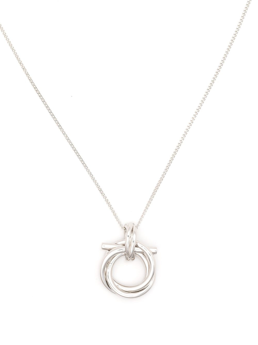 Gancini pendant necklace Salvatore Ferragamo combines signature house codes with dainty details, as showcased on this necklace. Crafted from silver-tone brass and offering a refined polished finish, this necklace stands out thanks to the iconic Gancini motif, here presented as a pendant. Made in Italy SIZE & FIT Model measurements Height 5 ft 10 in(1.77 m) Bust/Chest 32.28 in(82 cm) Hips 36.61 in(93 cm) Waist 25.19 in(64 cm) Measurement Length when open 15.74 in(40 cm) PENDANT LENGTH 0.9 in(2.3 cm) PENDANT WIDTH 0.74 in(1.9 cm) WIDTH 0.03 in(0.1 cm)