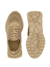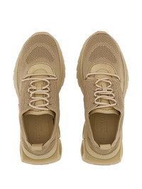 Gancini-plaque low-top sneakers stone beige calf leather knitted upper Gancini plaque logo-embossed tongue branded heel counter logo at the sole pull-tab at the heel front lace-up fastening round toe flat rubber sole branded insole Made in Italy Composition Leather 100%