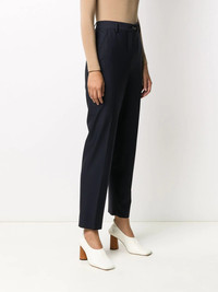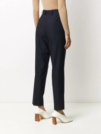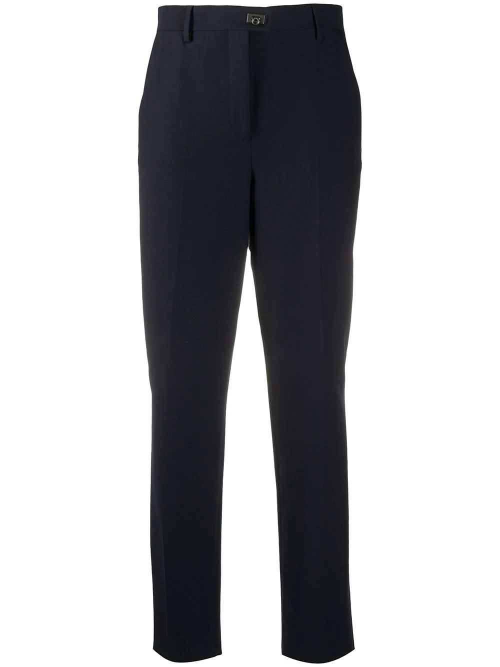 Gancini-plaque straight-leg trousers Whether it's delicious carbs or a new pair of trousers, we don't deny ourselves anything. And you'll find us eating spaghetti while wearing this delicious tailored pair. Salvatore Ferragamo is on the menu, you better not spill your food. Highlights - Navy-blue - Gancini plaque - Pressed crease - Belt loops - Concealed front fastening - Straight leg - Two side slit pockets Made in Italy Composition Lining: Cotton 100% Outer: Virgin Wool 100% SIZE & FIT Model measurements Height 5 ft 10 in(1.79 m) Bust/Chest 31.88 in(81 cm) Hips 35.43 in(90 cm) Waist 23.62 in(60 cm) FittingInformation This piece fits true to size. We recommend you get your regular size Designed to be fitted at the waist and hips, loose over the leg Made with a mid-weight fabric Washing instructions Dry Clean Only