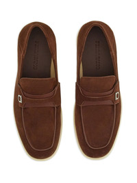 Gancini-plaque suede loafers Highlights - Cocoa brown - Calf suede - Silver-tone gancini plaque - Strap detailing - Logo at the sole - Slip-on style - Round toe - Branded insole - Flat rubber sole Made in Italy Composition Outer: CALFSKIN 100% SIZE & FIT Measurement HEEL 0.78 in(2 cm) Sole height 0.39 in(1 cm)