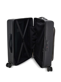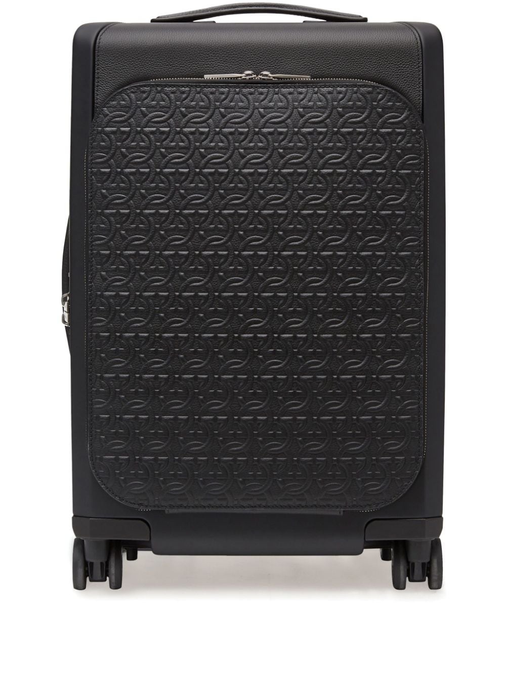 Gancini-print leather luggage Highlights - Black - Leather - Gancini print - Single top handle - Single flat side handle - All-around zip fastening - Front zip-fastening pocket - Four wheels Made in Italy Composition Outer: CALFSKIN 60%, Plastic 40% Lining: Polyester 100% SIZE & FIT Measurement DEPTH 8.26 in(21 cm) HEIGHT 21.65 in(55 cm) WIDTH 14.96 in(38 cm)