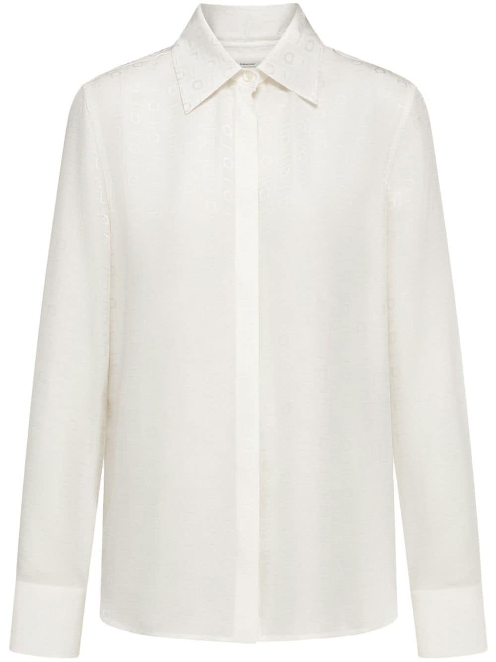 Gancini-print shirt Highlights - White - Silk - Gancini print - Concealed front fastening - Straight-point collar - Long sleeves - Buttoned-cuff sleeves - Straight hem Made in Italy Composition Outer: Silk 100%