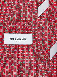Gancini-print silk tie Highlights - Red - Gancini print - Pointed tip - Logo tag - Adjustable fit Made in Italy Composition Silk 100%