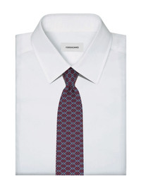 Gancini-print silk tie Highlights - Navy blue/bright red - Silk - Gancini print - Self-tie fastening - Pointed tip Made in Italy Composition Outer: Silk 100% Lining: Wool 100%