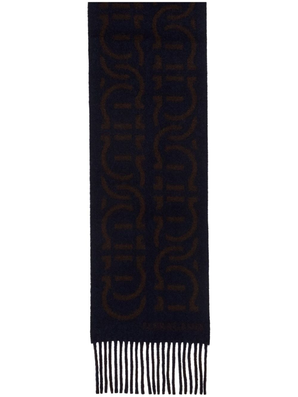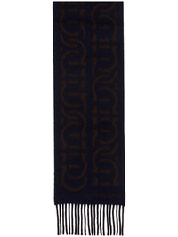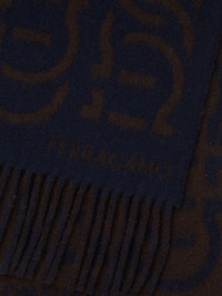 Gancini-print wool-blend scarf Highlights - Cedar brown/navy blue - Wool-cashmere blend - Knitted construction - Fringe detailing - Gancini print - Intarsia-knit logo - Wraparound style Made in Italy Composition Outer: Wool 57%, Cashmere 43%