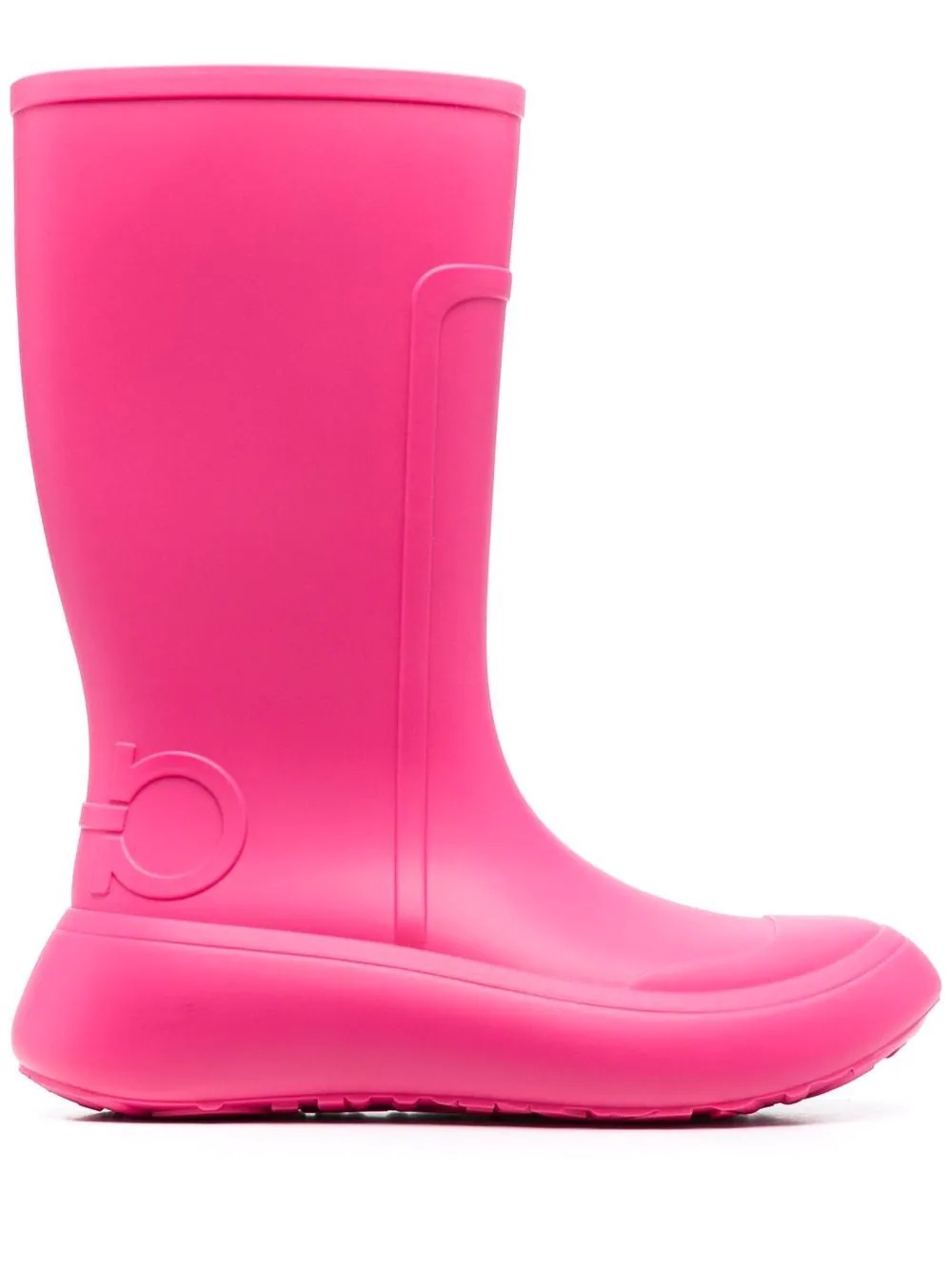Gancini raised-logo rain boots hot pink Gancini print embossed detail round toe branded insole calf-length ridged rubber sole pull-on style Made in Italy Composition Outer: PVC 100% Lining: Fabric 100% Sole: Rubber 100% SIZE & FIT Measurement CIRCUMFERENCE 12.59 in(32 cm) HEEL 0.39 in(1 cm) HEIGHT 10.62 in(27 cm) Sole height 1.18 in(3 cm)