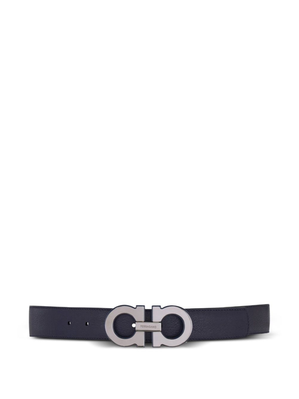 Gancini reversible belt Highlights - Midnight blue - Calfskin leather - Gancini buckle - Contrast stitching - Reversible design - Adjustable length Made in Italy Composition CALFSKIN 100%