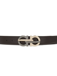 Gancini reversible belt Highlights - Brown - Gancini buckle - Punched holes - Adjustable fit Made in Italy Composition CALFSKIN 100% SIZE & FIT Measurement WIDTH 1.25 in(3.2 cm)