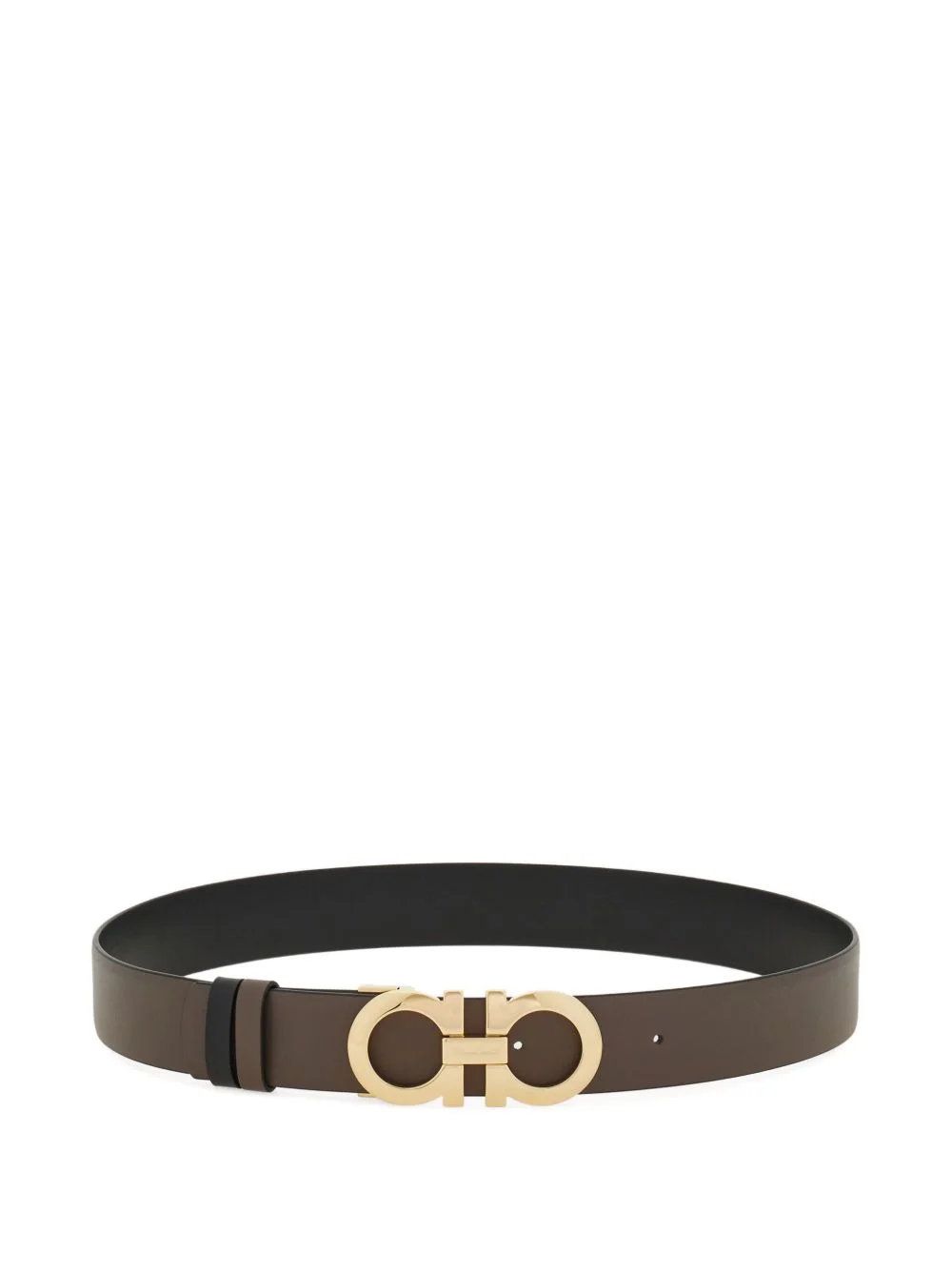 Gancini reversible belt Highlights - Concrete brown/black - Calf leather - Gold-tone hardware - Gancini buckle - Adjustable length - Reversible Made in Italy Composition Calf Leather 100% SIZE & FIT Measurement WIDTH 1.37 in(3.5 cm)