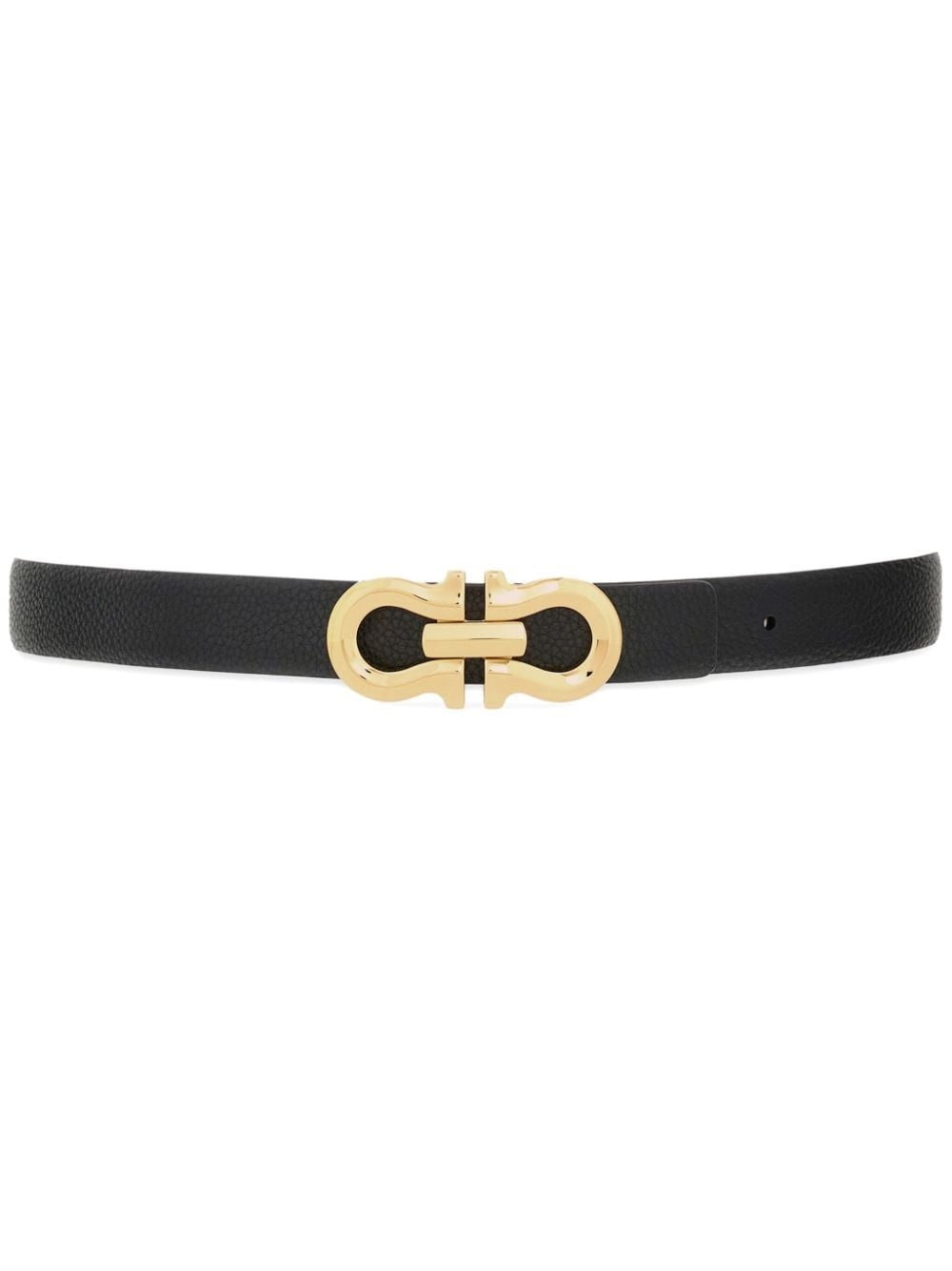 Gancini reversible leather belt Highlights - Jet black/flame red - Calf leather - Grained texture - Reversible - Gold-tone hardware - Gancini buckle - Punched holes - Adjustable fit Made in Italy Composition Outer: Calf Leather 100% SIZE & FIT Measurement WIDTH 0.98 in(2.5 cm)