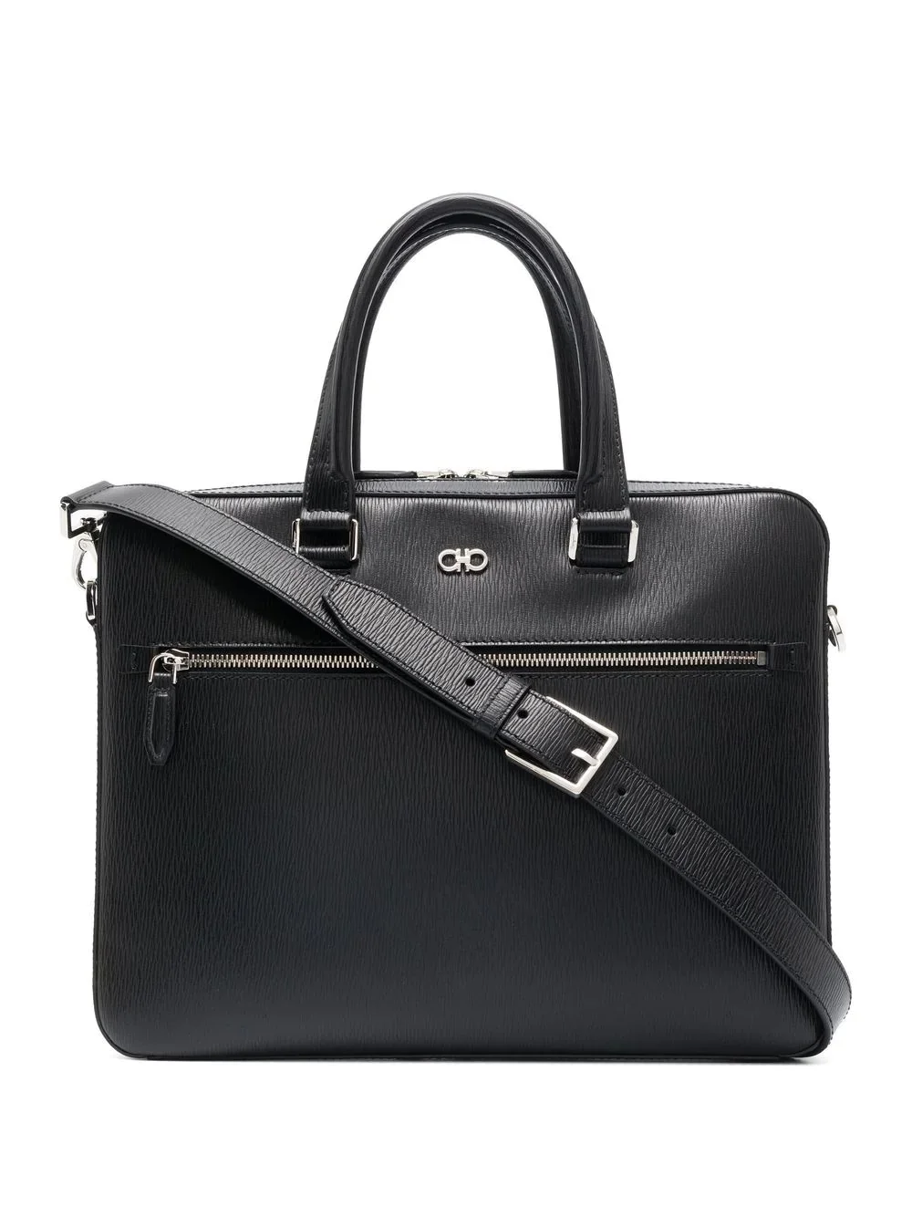 Gancini revival briefcase black calf leather Gancini plaque front zip-fastening pocket two-way zip fastening Made in Italy Composition Outer: Calf Leather 100% SIZE & FIT Model measurements Height 6 ft 2 in(1.87 m) Bust/Chest 38.18 in(97 cm) Hips 36.61 in(93 cm) Waist 29.13 in(74 cm) Measurement DEPTH 2.16 in(5.5 cm) HEIGHT 11.02 in(28 cm) WIDTH 14.17 in(36 cm)