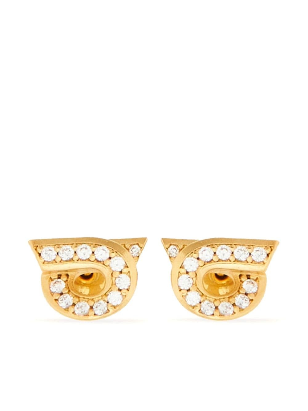 Gancini rhinestone-embellished earrings Highlights - Gold-tone - Rhinestone embellishment - Gancini plaque - Polished finish - Engraved logo - Post-back fastening - For pierced ears - These earrings come as a pair. Made in Italy