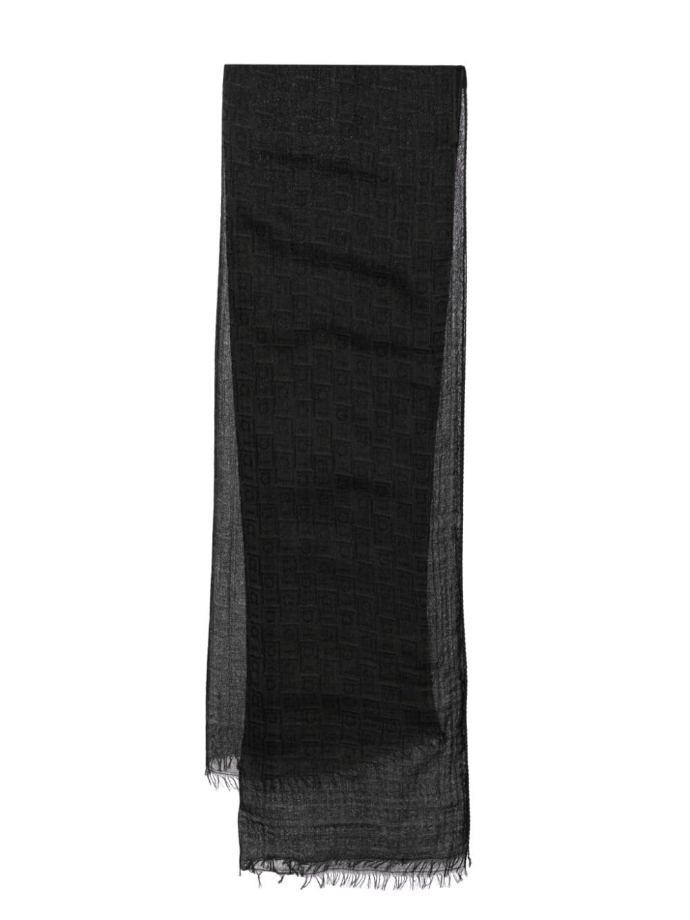 Gancini scarf Highlights - Black - Cotton - Semi-sheer construction - Gancini print - Monogram jacquard - Fringed edge - Rectangle shape - Wraparound style Made in Italy Composition Cotton 100% SIZE & FIT Measurement LENGTH 78.74 in(200 cm) WIDTH 50.39 in(128 cm)