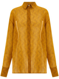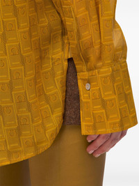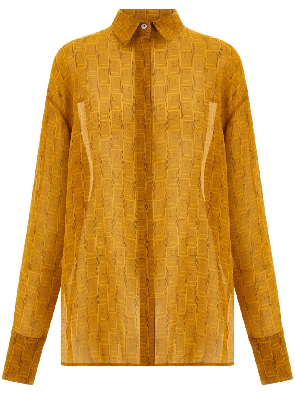 Gancini shirt Highlights - Mustard yellow - Silk - Semi-sheer construction - Gancini print - Monogram pattern - Classic collar - Front button fastening - Long sleeves - Buttoned-cuff sleeves - Curved hem Made in Italy Composition Silk 100%