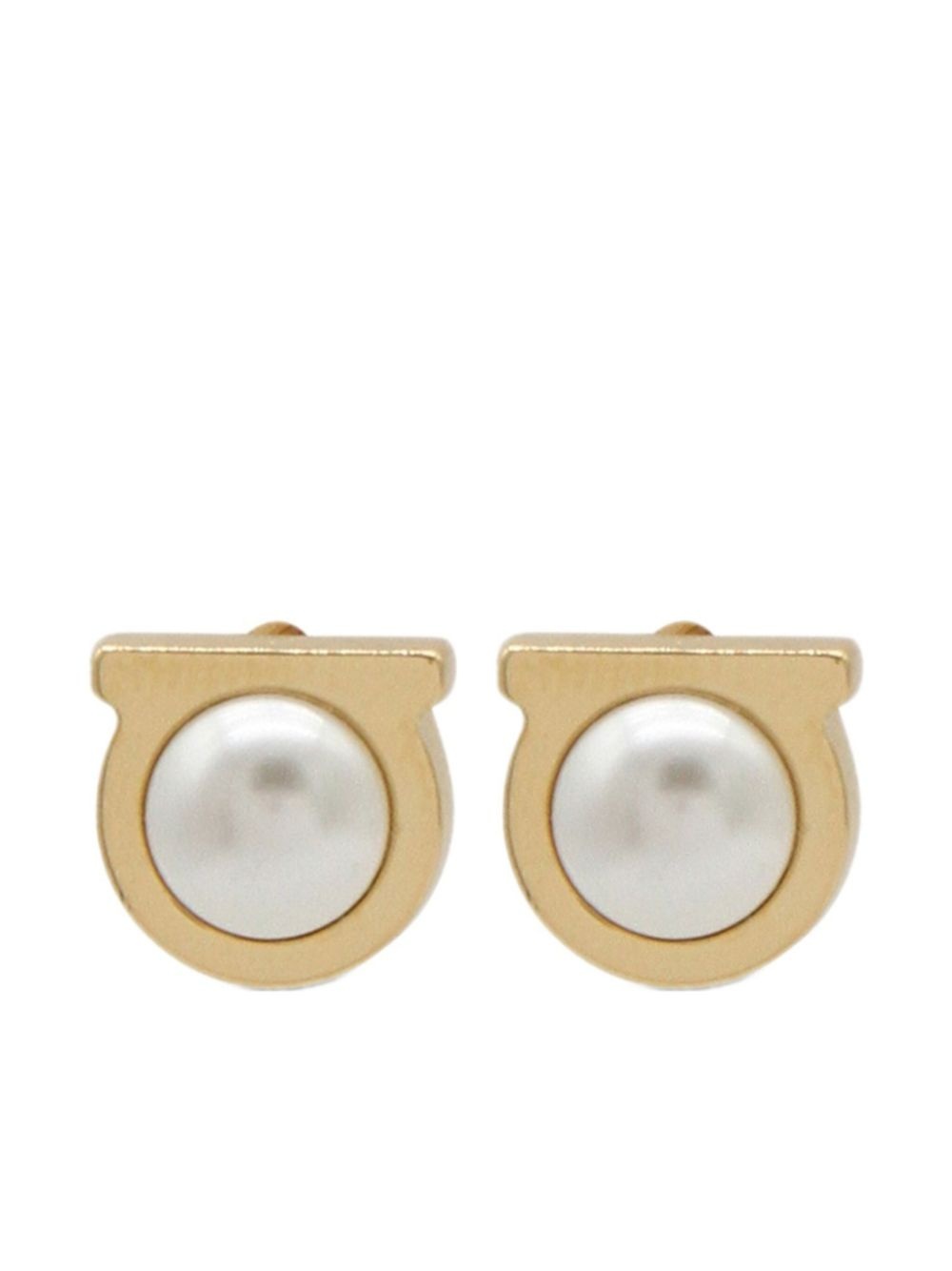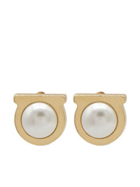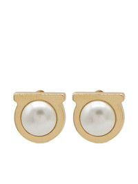 Gancini stud earrings Highlights - Gold-tone - Faux-pearl detailing - Post-back fastening - For pierced ears - These earrings come as a pair. Made in Italy SIZE & FIT Measurement WIDTH 0.35 in(0.9 cm) HEIGHT 0.35 in(0.9 cm)
