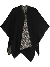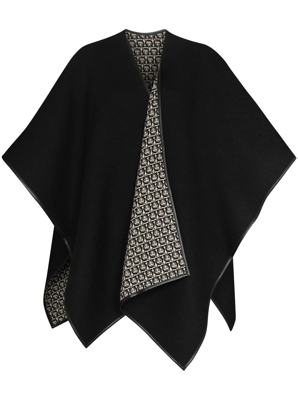 Gancini wool cape Ferragamo's equestrian-inspired aesthetic is showcased by the Gancini pattern that adorns one side of this wool cape. A leather trim further enhances the heritage feel associated with the motif. Made in Italy Composition Wool 95%, Calf Leather 5% SIZE & FIT Model measurements Height 5 ft 11 in(1.8 m) Bust/Chest 31.49 in(80 cm) Hips 36.22 in(92 cm) Waist 25.59 in(65 cm) Measurement LENGTH 30.7 in(78 cm) Shoulder Width 18.11 in(46 cm) FittingInformation This piece fits true to size. We recommend you get your regular size Cut for a loose fit Made with a mid-weight fabric Washing instructions Dry Clean Only