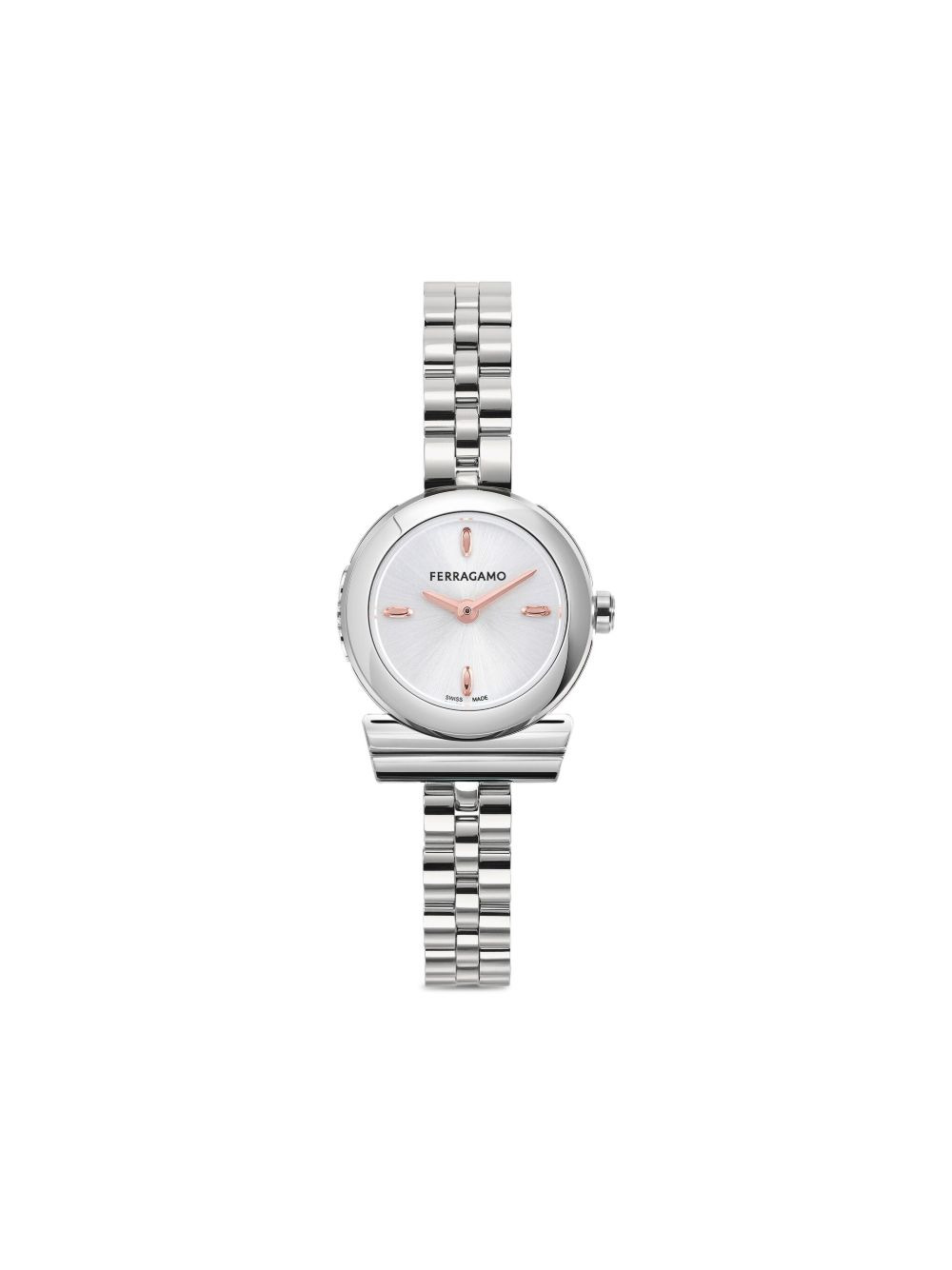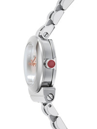 Gancino 22.5mm Highlights - White dial - Round case shape - 22.5mm case size - Rose gold-tone dial features - Red crown - Quartz movement - Stainless steel bezel - Water resistance up to 30m/3 atm - This item comes with a standard two-year warranty from the brand. Imported SIZE & FIT Measurement DIAMETER 0.88 in(2.2 cm)