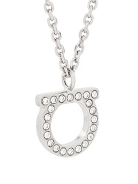 Gancio crystal-embellished necklace Silver-tone metal Gancio crystal-embellished necklace from Ferragamo. Highlights - Founded back in 1927, salvatore ferragamo remains an iconic symbol of glamorous italian craftsmanship and timeless design. the fastest way to recognise a ferragamo accessory is through the brand’s signature horseshoe-inspired gancio or gancini which originally appeared on a handbag in 196. crafted in italy from silver-tone metal, this gancio crystal-embellished necklace from salvatore ferragamo features an adjustable fit, a lobster clasp closure and a hanging logo charm. Made in Italy SIZE & FIT Measurement Length when open 18.5 in(47 cm) PENDANT WIDTH 0.47 in(1.2 cm) PENDANT LENGTH 0.47 in(1.2 cm) TOTAL LENGTH 0.03 in(0.1 cm)