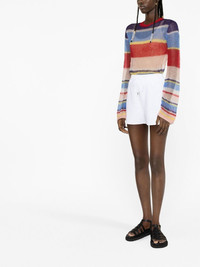 Gancio-perforated shorts A perforated Gancio motif details these Ferragamo shorts. The iconic logo is inspired by the iron gates of the brand's Florentine headquarters. Made in Italy Composition Lambskin 100%, Viscose 73%, Polyester 20%, Polyamide 5%, Spandex/Elastane 2% SIZE & FIT Model measurements Height 5 ft 10 in(1.79 m) Bust/Chest 31.1 in(79 cm) Hips 35.03 in(89 cm) Waist 24.01 in(61 cm) FittingInformation This piece fits true to size. We recommend you get your regular size Cut for a slim fit Made with a mid-weight stretch fabric Washing instructions Dry Clean Only