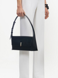 Geometric leather shoulder bag black calf leather silver-tone hardware silver-tone logo plaque engraved logo foldover top main compartment adjustable top handle Made in Italy Composition Outer: CALFSKIN 100% Lining: Lambskin 100% SIZE & FIT Measurement DEPTH 3.74 in(9.5 cm) HEIGHT 6.1 in(15.5 cm) WIDTH 12.59 in(32 cm)