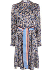 graphic-print day dress graphic-print day dress from SALVATORE FERRAGAMO featuring all-over graphic print, round neck, long sleeves, tied waist, knee-length, blue and silk. Made in Italy Composition Silk 100% SIZE & FIT Model measurements Height 5 ft 11 in(1.8 m) Bust/Chest 31.49 in(80 cm) Hips 35.43 in(90 cm) Waist 25.19 in(64 cm) Measurement HIPS 36.22 in(92 cm) LENGTH 41.33 in(105 cm) WAIST 28.34 in(72 cm) FittingInformation This piece fits true to size. We recommend you get your regular size Designed for a close fit at the bust and waist, but loose at the hip Made with a mid-weight non-stretch fabric Washing instructions Dry Clean Only