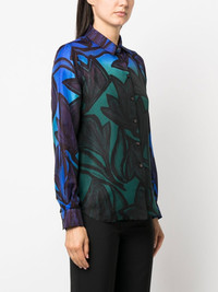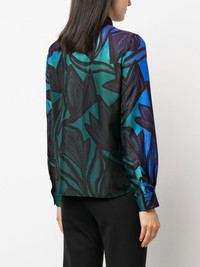 graphic-print silk shirt blue/multicolour silk all-over graphic print spread collar front button fastening long sleeves buttoned cuffs straight hem Made in Italy Composition Silk 100% SIZE & FIT Model measurements Height 5 ft 11 in(1.8 m) Bust/Chest 33.07 in(84 cm) Hips 37.4 in(95 cm) Waist 25.19 in(64 cm) FittingInformation This piece fits true to size. We recommend you get your regular size Cut for a loose fit Made with a lightweight non-stretch fabric