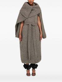 herringbone belted coat Highlights - Brown - Herringbone pattern - Cape collar - Self-tie belt - Long sleeves - Oversize fit Made in Italy Composition Outer: Virgin Wool 83%, Cotton 17% Lining: Rayon 100% Washing instructions Read Manufacturer Guidelines